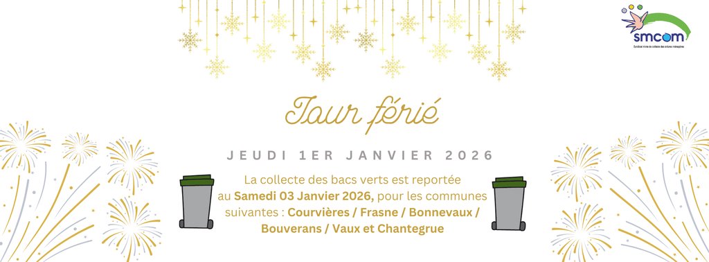 La collecte des bacs verts du jeudi 1er janvier 2026 est reportée au samedi 3 janvier 2026